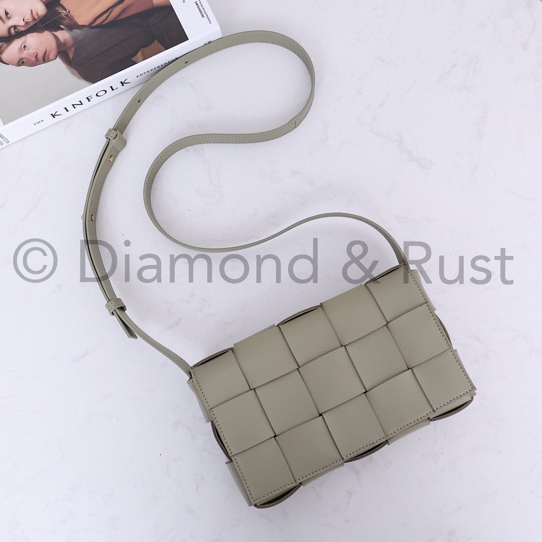 The bag comes with dust bag, it does not come with box. • Interwoven cross-body bag• Oil tanned genuine calf leather• Single interior zipped pocket• Magnetic closureMaterial: 100% Calfskin• Height: 15cm• Width: 23cm• Depth: 5cm• Strap drop: 55cmColor: Raintree Green Hardware: Gold