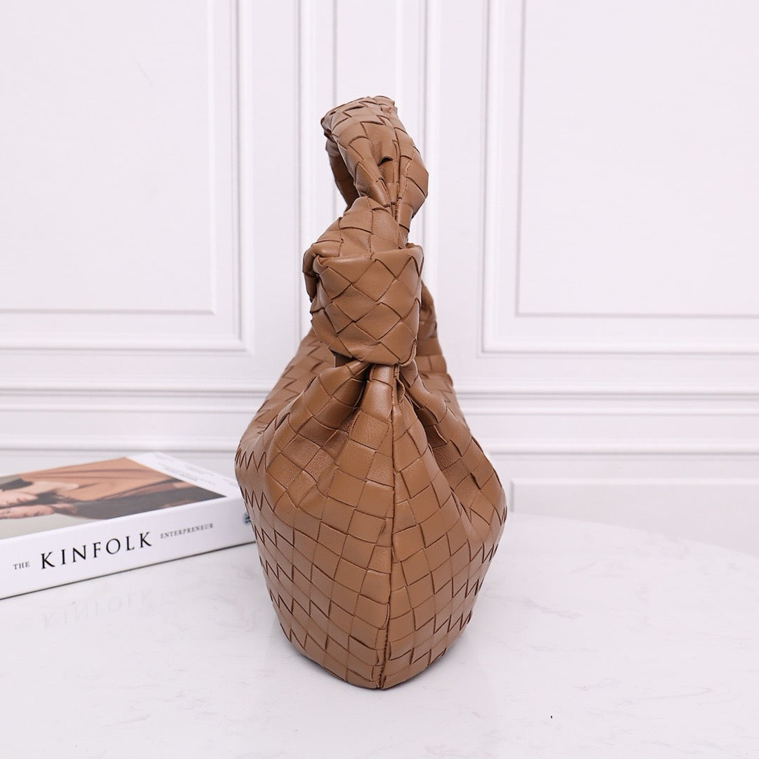 Soft clutch with knotted handle in woven leather