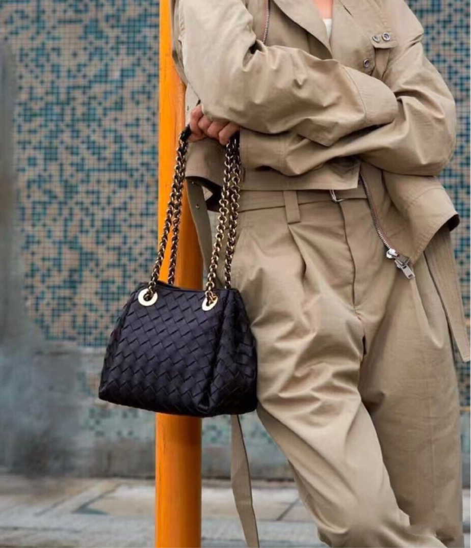 • Small Intrecciato leather shoulder bag with sliding cross-body chain