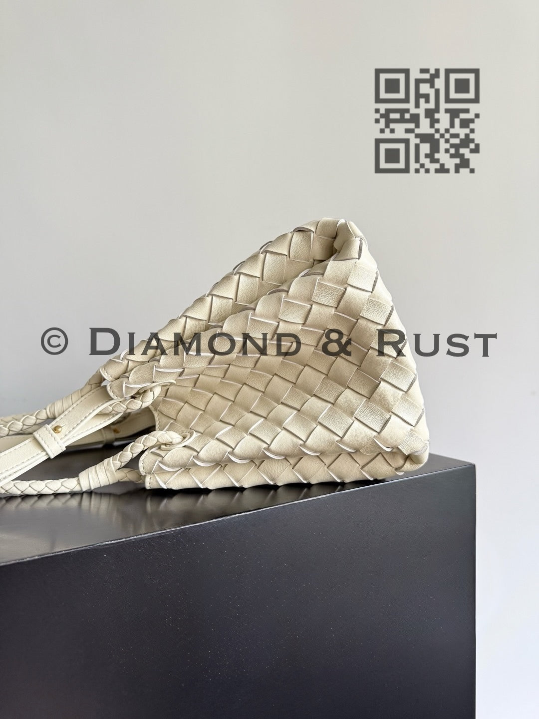Shoulder bag in supple Intrecciato leather with signature knot detail and detachable cross-body strap.