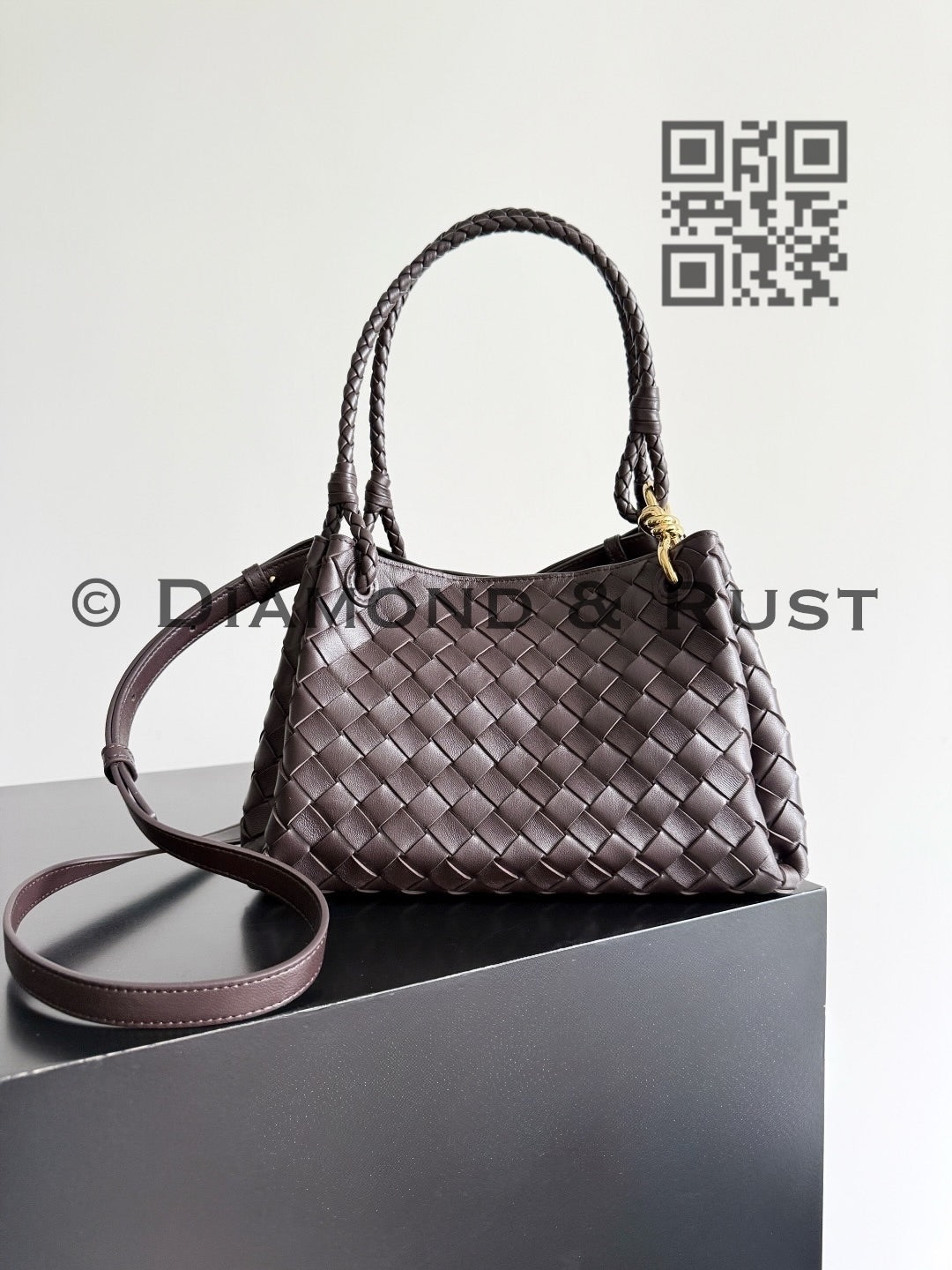 Shoulder bag in supple Intrecciato leather with signature knot detail and detachable cross-body strap.