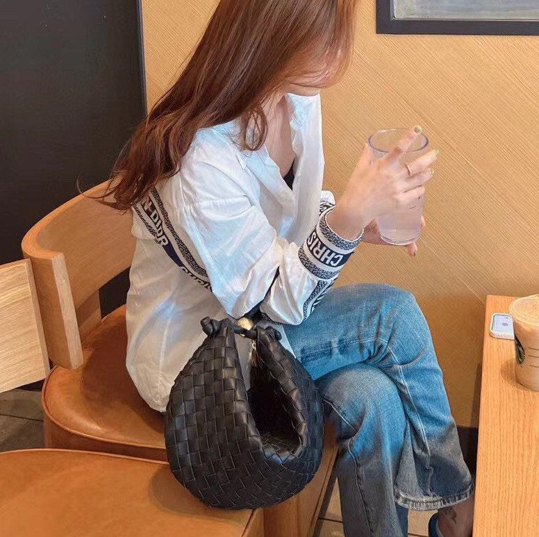 DUST BAG INCLUDED NOT BOX Made to order Intrecciato hand crafted mini turn pouch bag Full grain genuine leather Hardware: Gold Approx.40cm X 24 cm X 3cm Bag weight: 1 lb