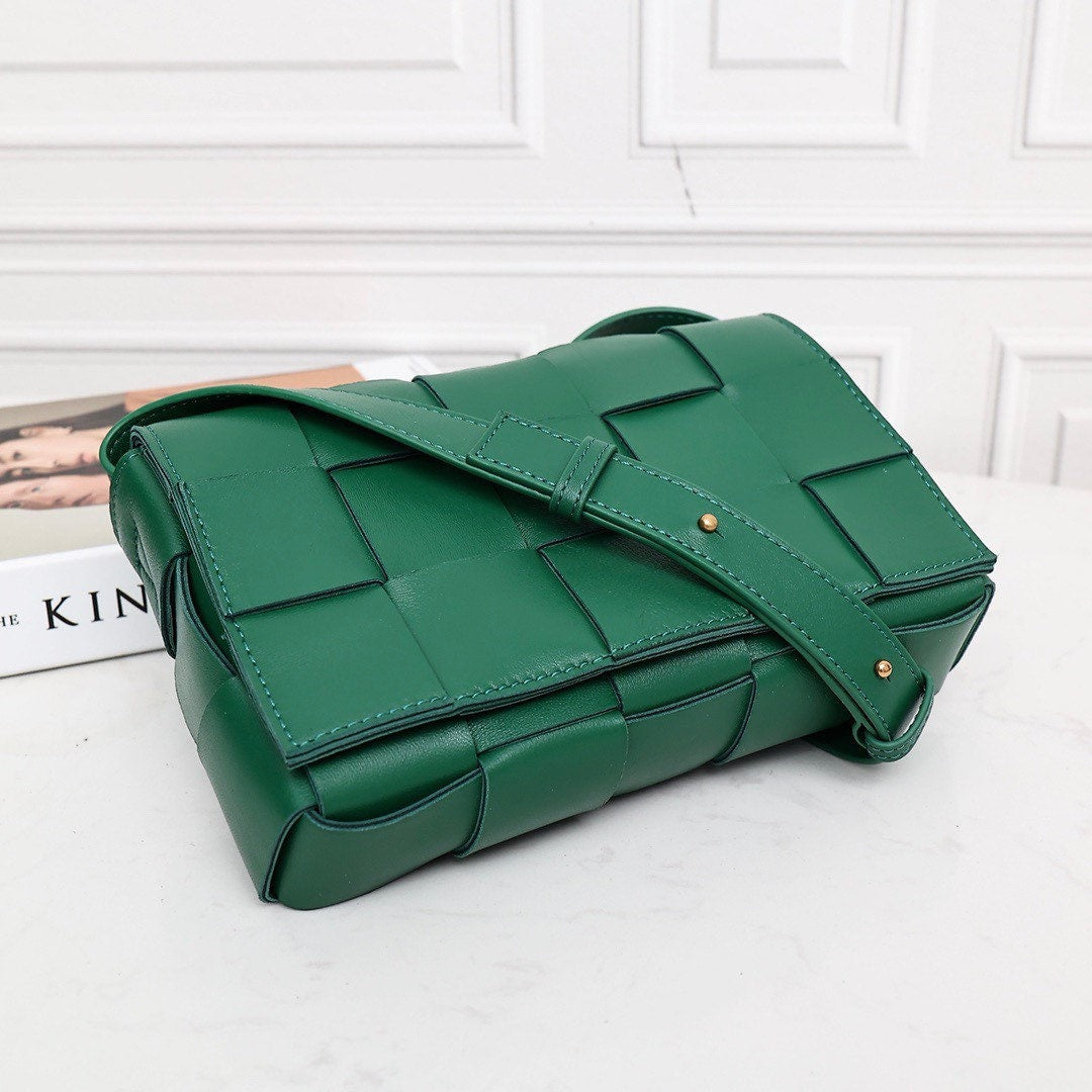 The bag comes with dust bag, it does not come with box. • Interwoven cross-body bag• Oil tanned genuine calf leather• Single interior zipped pocket• Magnetic closureMaterial: 100% Calfskin• Height: 15cm• Width: 23cm• Depth: 5cm• Strap drop: 55cmColor: Racing Green, Grass Green, Apple Green, Forrest Green Hardware: Gold/Silver
