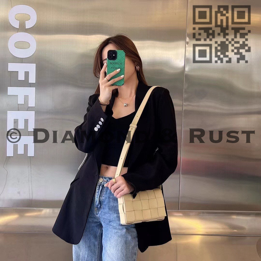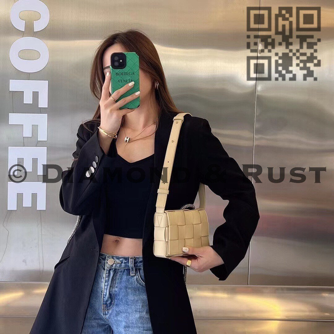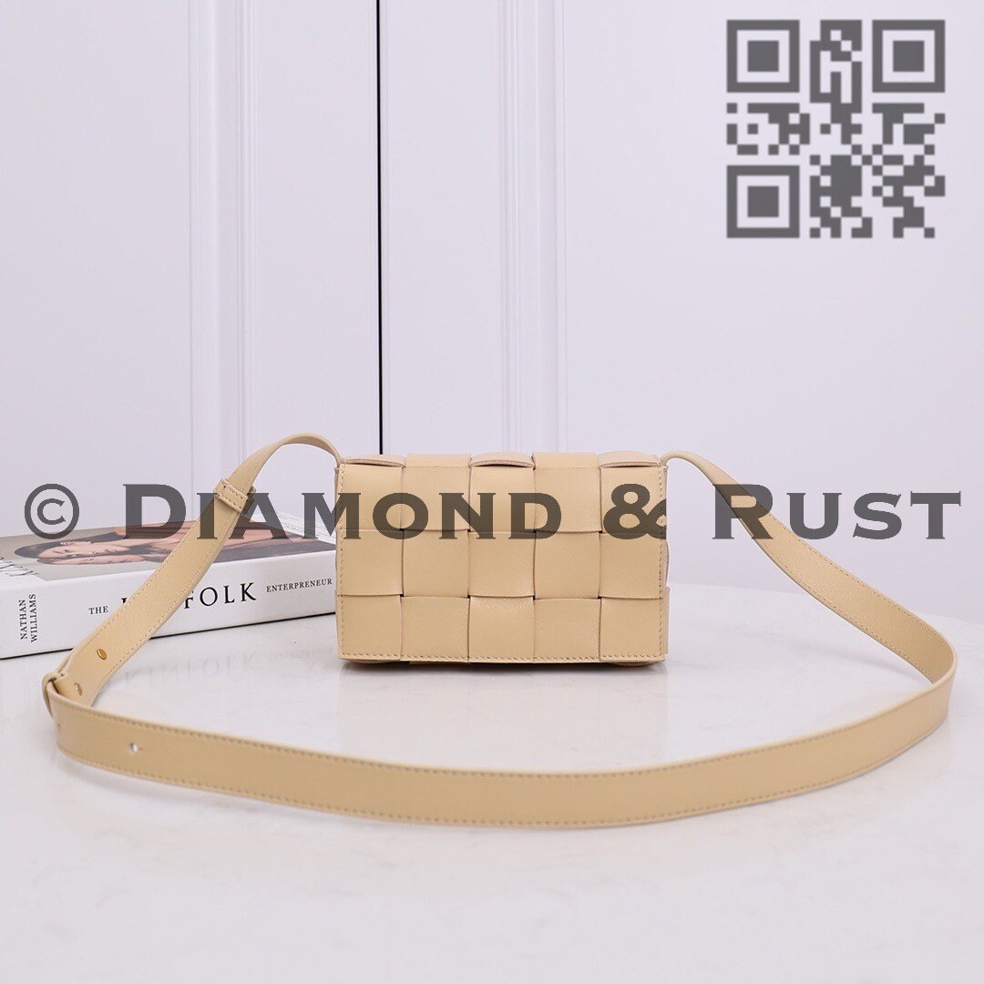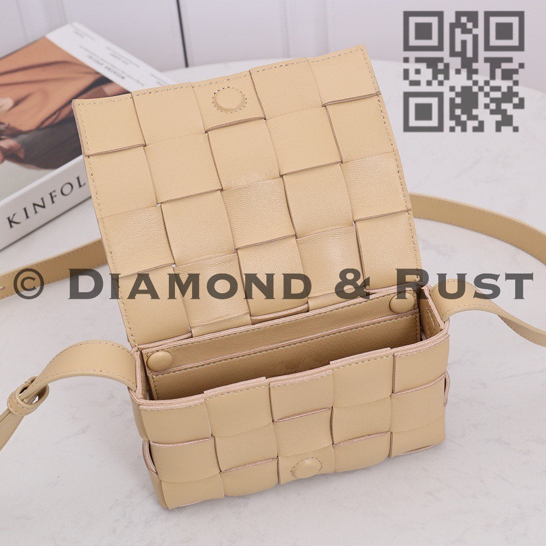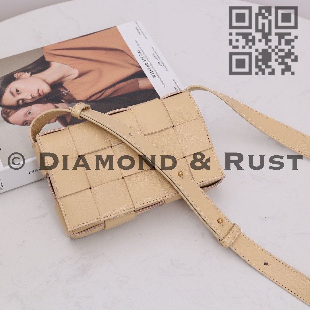 The bag comes with dust bag, it does not come with box. Full grain leather Triangle Buckle adjustable shoulder Strap Hardware: Gold /Silver Finish 19cm x 12cm x 4cm