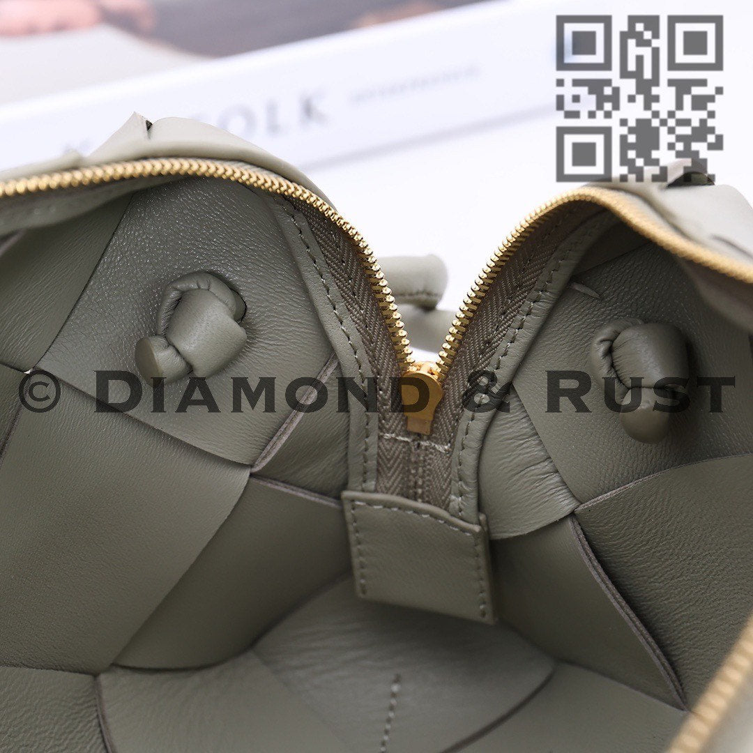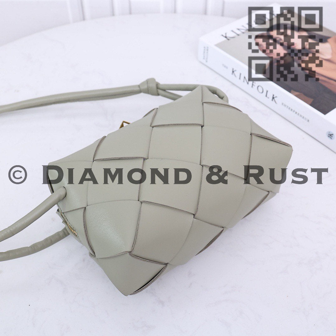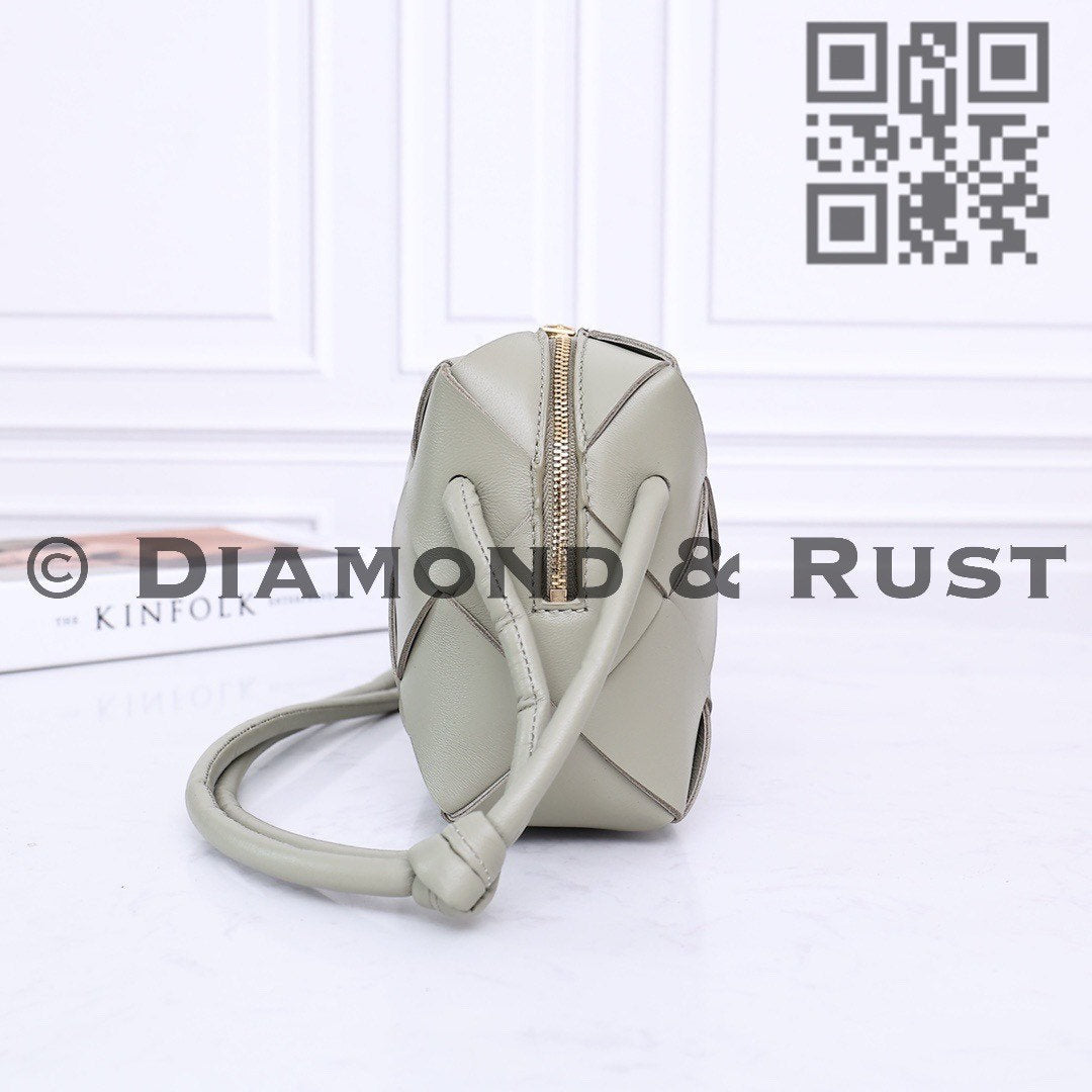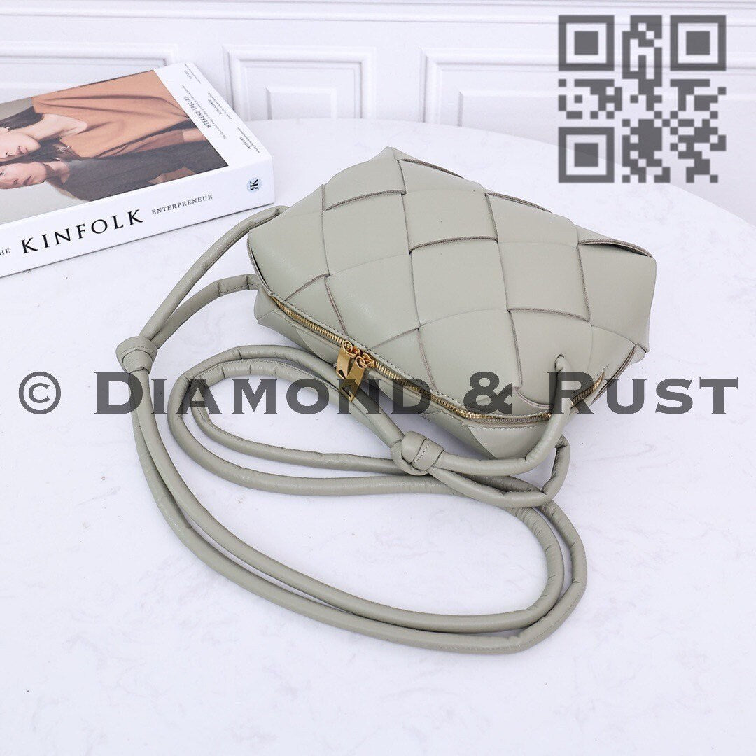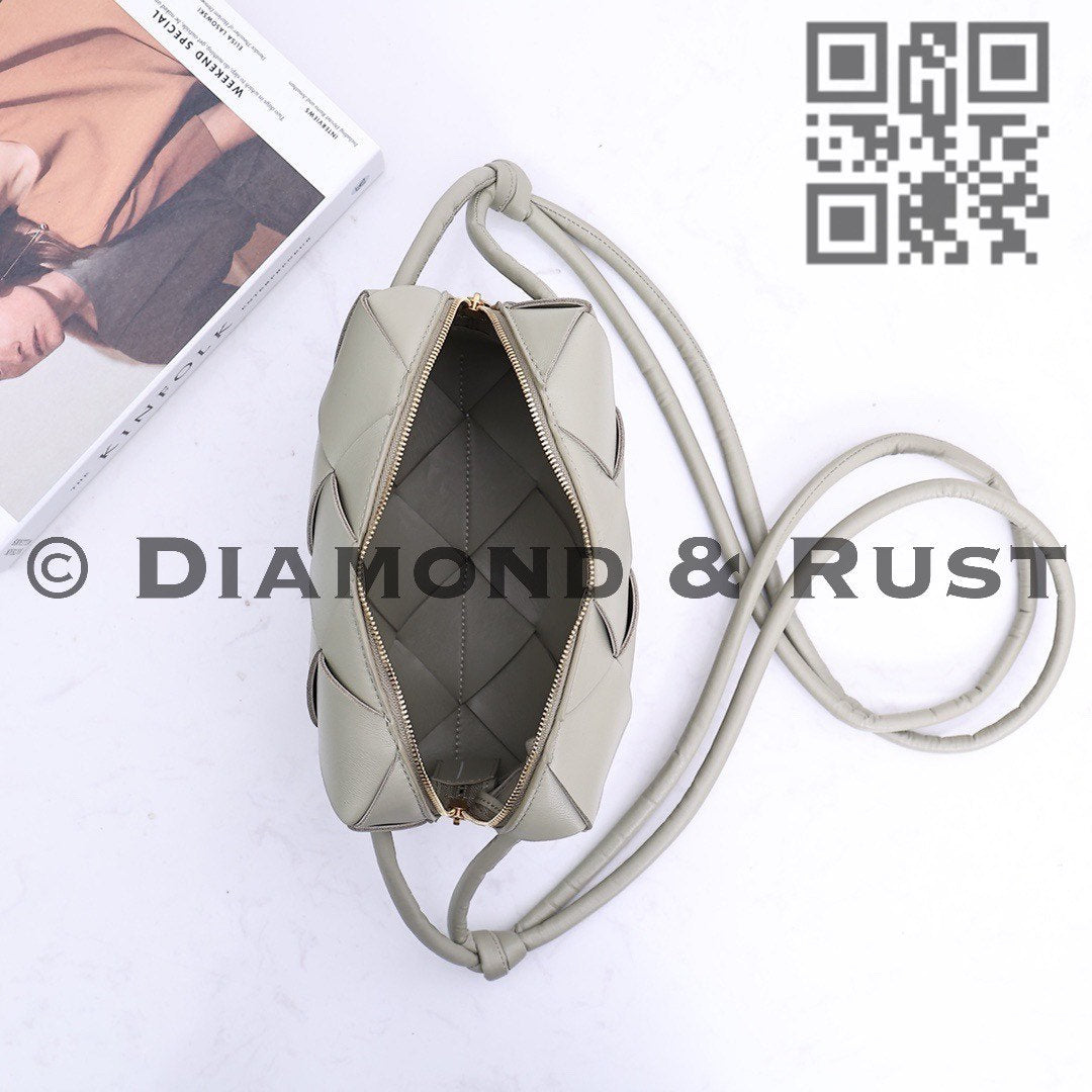 DUST BAG INCLUDED NOT BOX• Interwoven leather cross-body bag• Zipper Closure• Light weightMaterial: Laminated Lamb Leather• Height: 14.5cm• Width: 22cm• Depth: 7.5cm• Strap drop: 55cm Adjustable