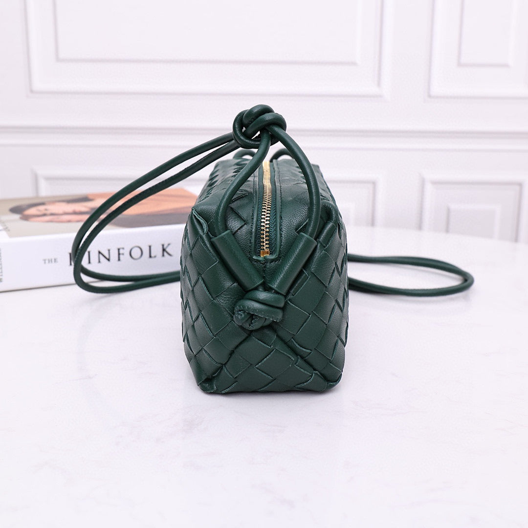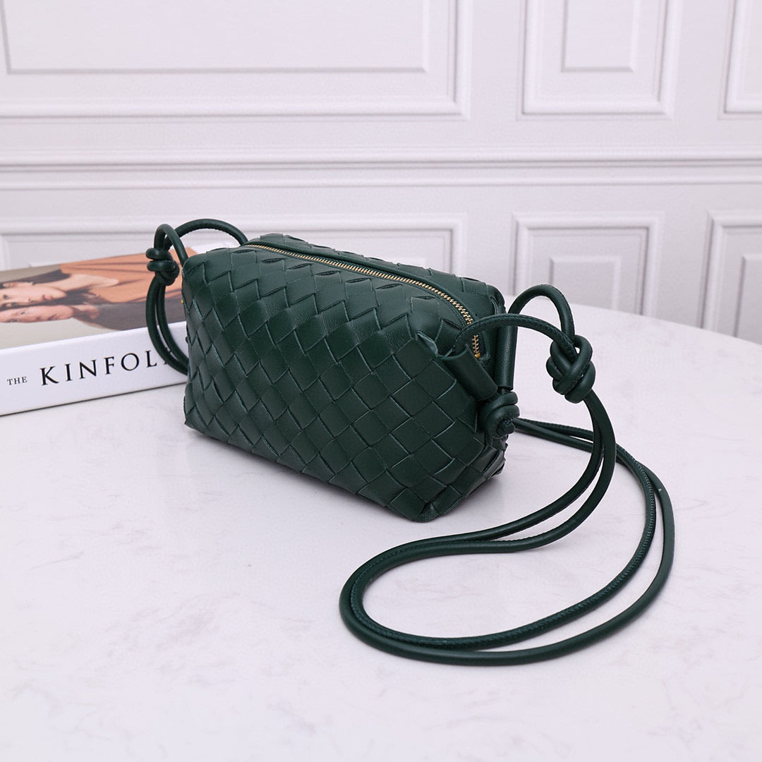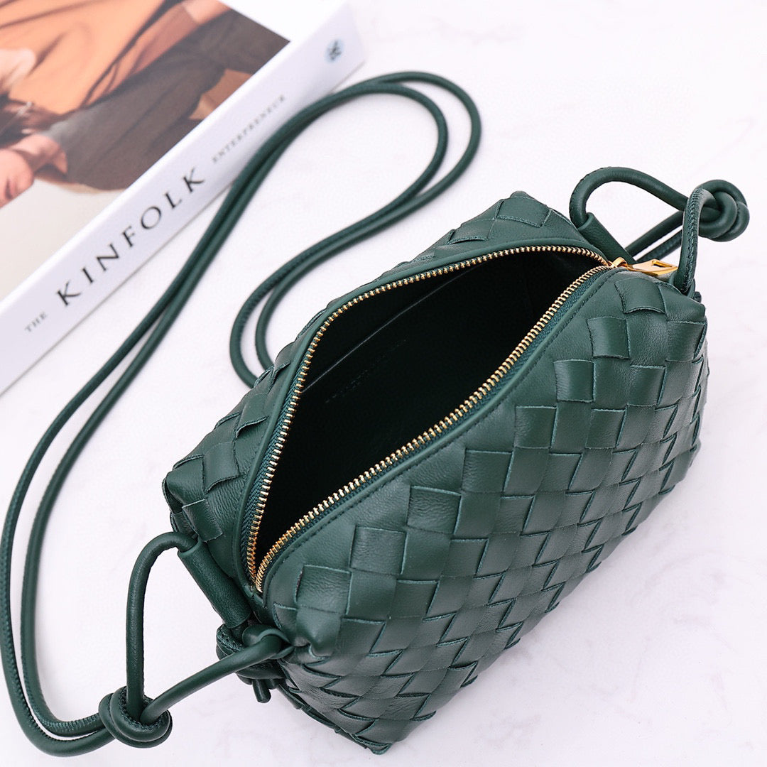DUST BAG INCLUDED NOT BOX• Interwoven leather cross-body bag• Zipper Closure• Light weightMaterial: 100% Lamb Leather, suede lined• Height: 10cm• Width: 17cm• Depth: 6cm• Strap drop: 55cm Adjustable