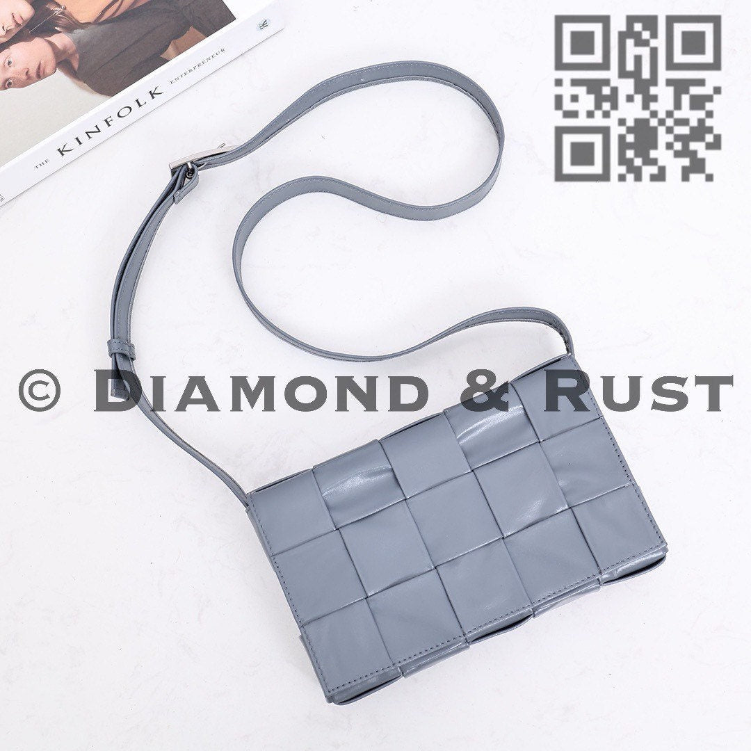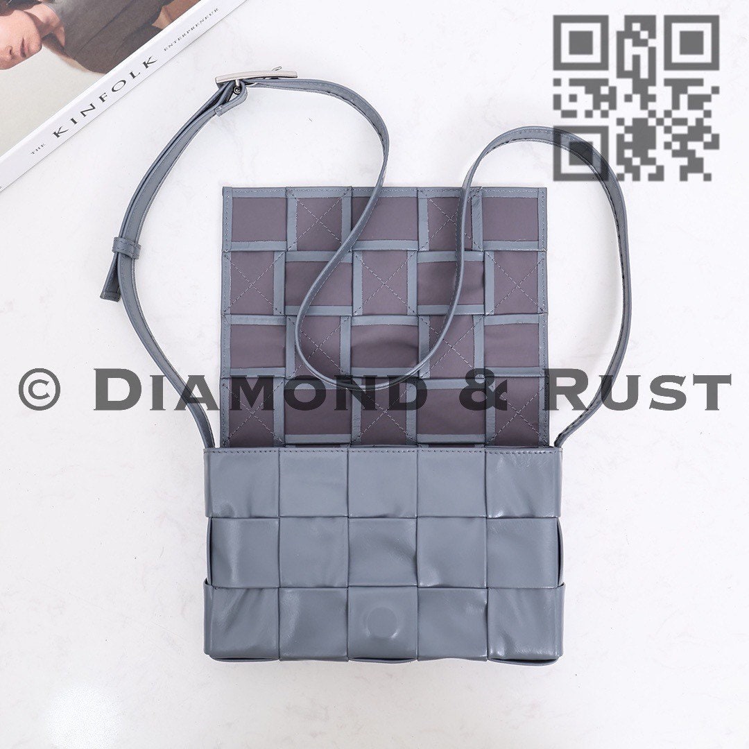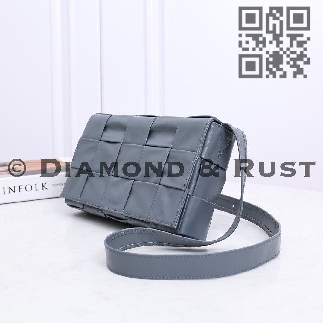 No logo or brand name Comes with dust bag Box is not included • Intreccio leather cross-body bag• Single interior zipped pocket• Magnetic closureMaterial: oil tanned Calfskin• Height: 15cm• Width: 23cm• Depth: 5cm• Strap drop: 55cmHardware: silver finish