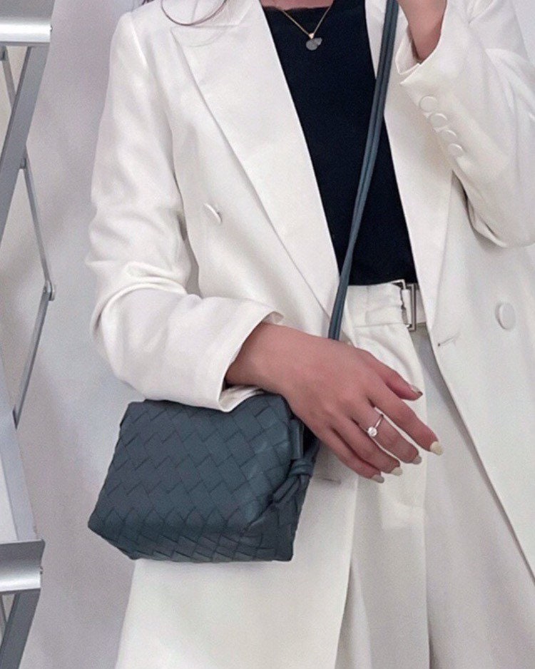 DUST BAG INCLUDED NOT BOX• Interwoven leather cross-body bag• Zipper ClosureMaterial: 100% Calfskin, leather lined• Height: 15cm• Width: 22cm• Depth: 8cm• Strap drop: 55cm Adjustable