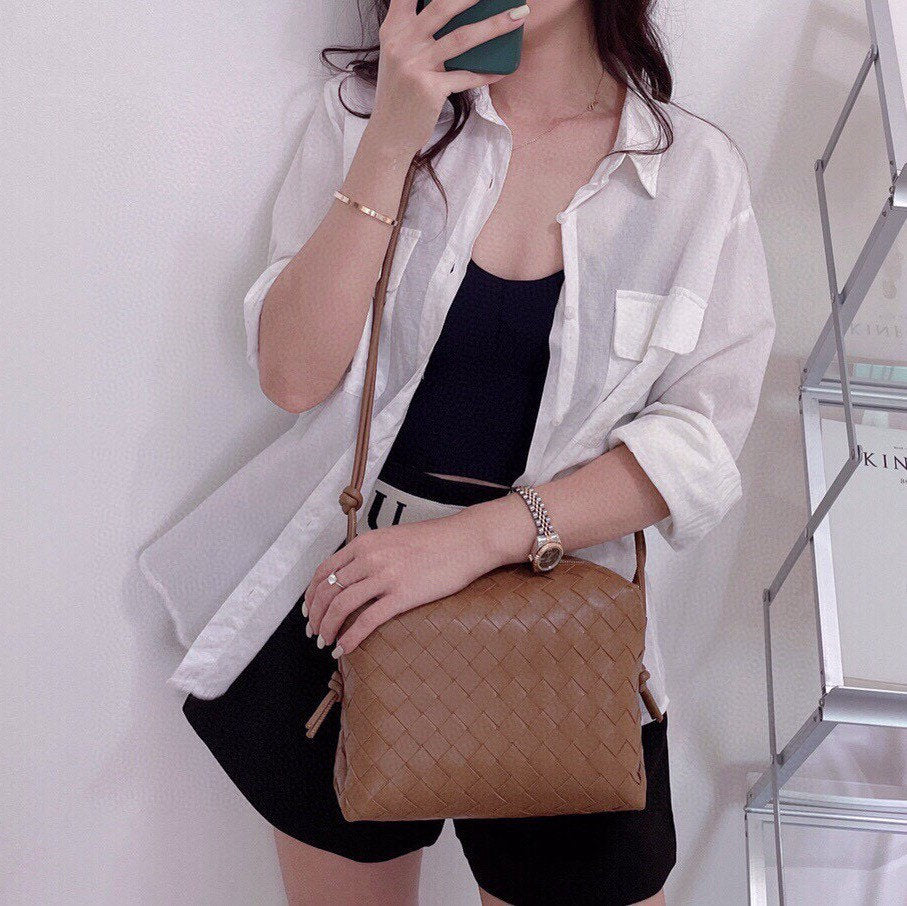 DUST BAG INCLUDED NOT BOX• Interwoven leather cross-body bag• Zipper ClosureMaterial: 100% Calfskin, leather lined• Height: 15cm• Width: 22cm• Depth: 8cm• Strap drop: 55cm Adjustable