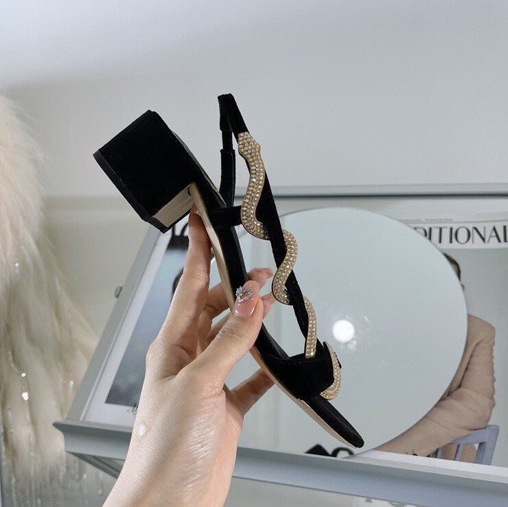 Snake Open Toe Sandals High Heel Sandal Shoes Jewels Wedding Shoes Dress Sandal With Snake Margot Black