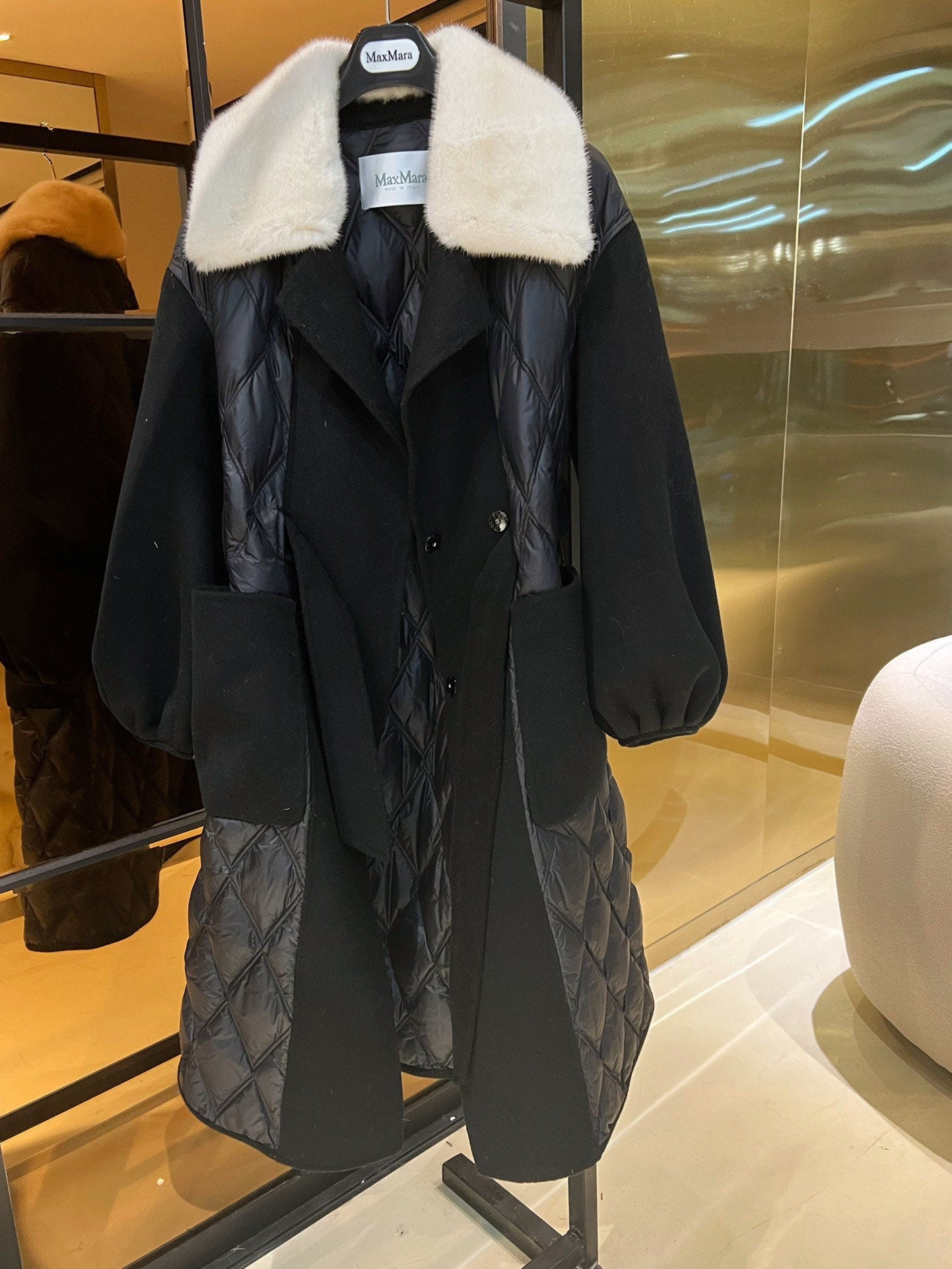 Max* inspired wool mink suit collar down jacket90 national standard goose down Seamless diamond check